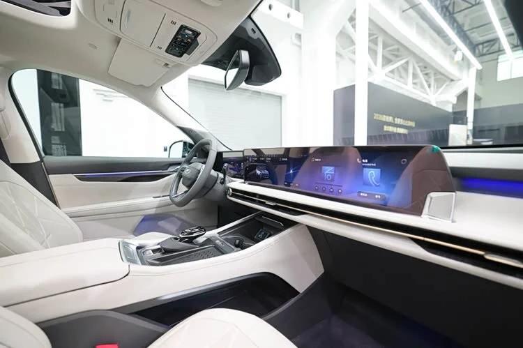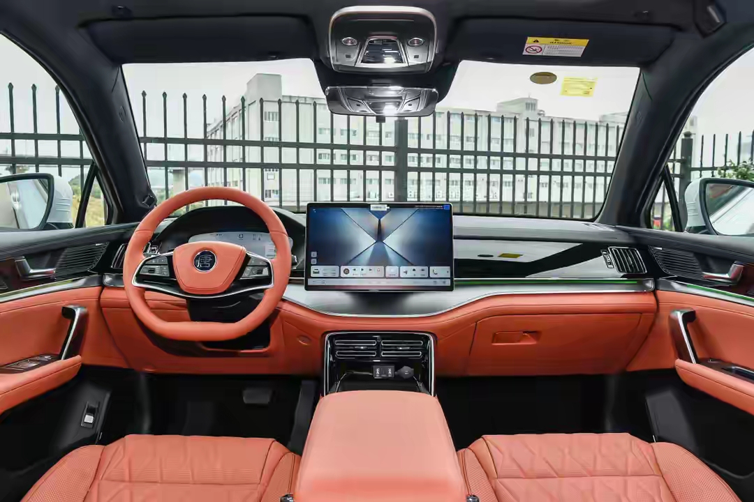 全系都是2+3+2的七座布局,2820mm的轴距保证了不错的车内空间。第三排虽然不适合长途乘坐,但应急完全没问题。内饰的科技感很足,15.6英寸的可旋转大屏是标志性配置,高配还有丹拿音响和车载冰箱,档次感一下就上来了。
