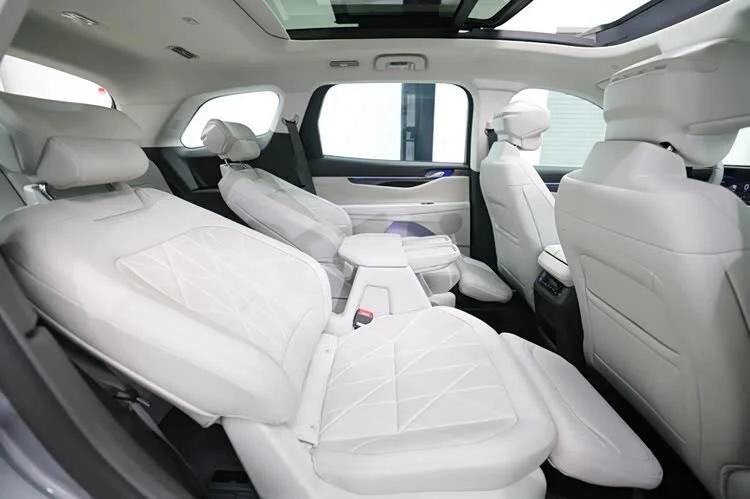它最大的绝活是“一键躺平”。通过车内的电动按钮,后两排座椅可以完全放倒,并与翻折的靠背形成一个超过3米长的纯平空间,瞬间变成一张“移动大床”。周末带娃去郊外,这就是一个绝佳的亲子娱乐小基地,实用性直接拉满。